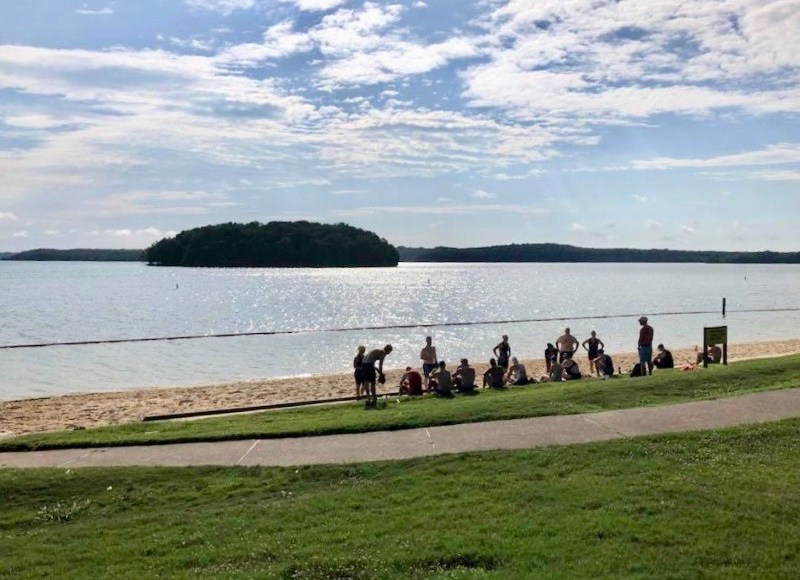 Nashville is a great place to play at triathlon. Nashville is known as Music City and, apparently, a popular bachelorette party destination; it’s also a triathlete’s dream. Our camp schedule had us training in and around Nashville at some of the very best places I have had the opportunity to swim, bike, and run. We practiced our open water swimming skills out at Anderson Road Beach (pictured above). The lake there is calm and clear. Swimmers have a large area to roam free of boats. Percy Warner Park has some of the most challenging terrain to run with lots of shade from the sun. And the Natchez Trace: if there is a more perfectly paved highway for cycling, extending hundreds of miles virtually car-free, I haven’t found it.